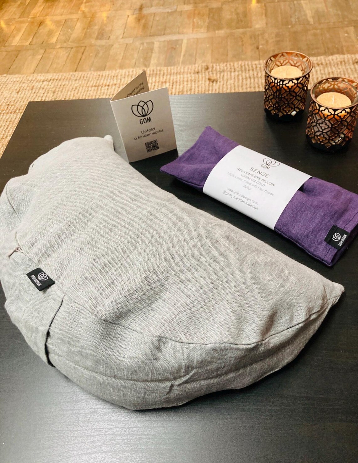 ARDA – Half Moon Meditation Cushion, Oat/Silver